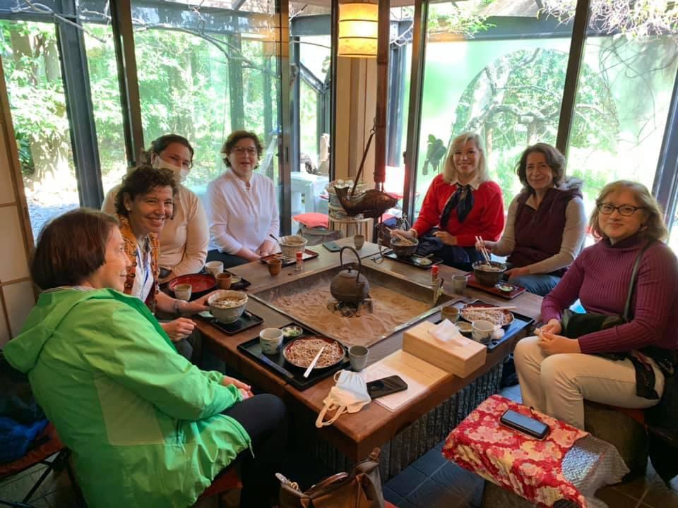 Para descansar tomamos un delicioso almuerzo de soba alrededor de un “irori” en una casa tradicional, donde su dueña, una simpática anciana, nos preparó especialmente una taza de matcha y un dulce llamado warabi-mochi.