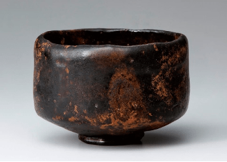 Con el fin de que el lector pueda ir comprendiendo a qué nos referimos cuando hablamos de rústico, modesto, impermanente, imperfecto o no convencional. Vamos a observar dos cuencos para la ceremonia del té, principio de la consolidación del wabi-sabi como categoría estética. El primero de ellos [Fig. 1] pertenece la cerámica shino-ware –técnica que produce una cerámica esmaltada y porosa de color blanco- y fue realizado en el s. XVI o XVII; de color claro, presenta un borde irregular y veteados en dos colores fruto del azar de la técnica empleada para su vitrificación. El segundo [Fig. 2] encarna los principios de Sen no Rikyū y presenta una textura más aterciopelada que el anterior, propia de la técnica raku-ware –técnica que se caracteriza por una cocción a baja temperatura y esmaltado con base de plomo-; su color profundo y velado es un claro ejemplo de la “opacidad de la sombra” de la que se habla Tanizaki Junichirō en El elogio de la sombra. En ambas piezas podemos ver que, a diferencia de la cerámica china de la época, su realización podría parecernos tosca, sus bordes y cuerpo no son regulares, como tampoco lo es su esmalte, que lejos de pretender obtener un brillo excesivo, parece querer absorber la luz y que esta pase a un elemento matérico más de ellos.